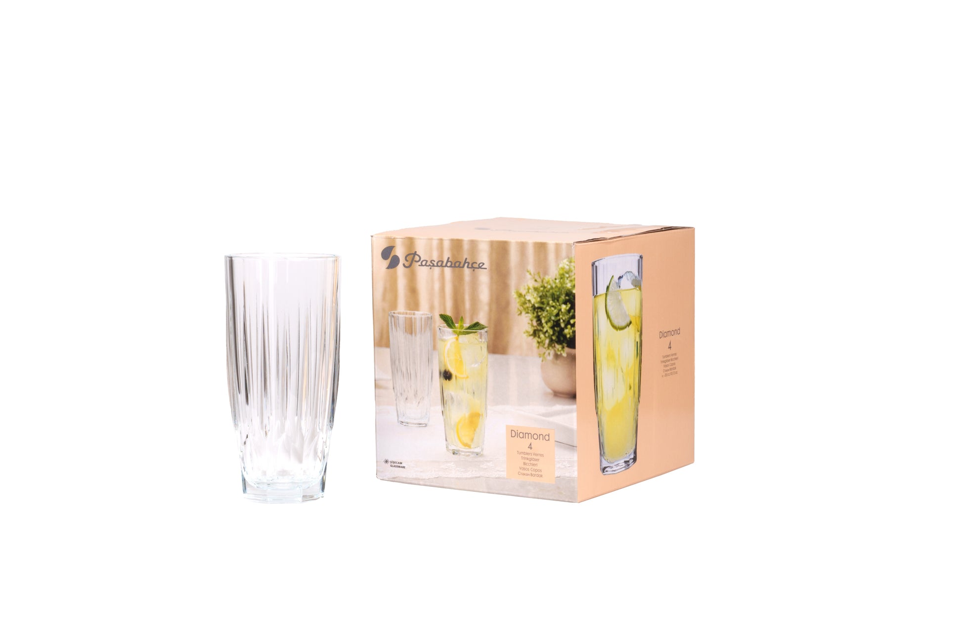 Pasabahçe traz para sua casa mais do que um produto, traz tradição, qualidade e um toque de elegância em cada detalhe. Não perca a chance de ter o Jogo com 4 Copos Long Drink Diamond de Vidro em sua coleção!